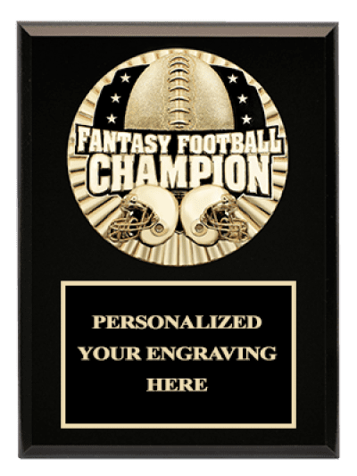 Crown's Fantasy Football Medallion 牌匾採用 3D 足球設計的獎章和足球鞋帶,就像真正的足球一樣,足球兩側各有三顆星,夢幻足球冠軍文字看起來越過球,以及兩個 3D 模製足球頭盔面向對面彼此的。為他們整個賽季的奉獻和成功獎勵您的聯盟!額外的雕刻、標識和設置費用適用。