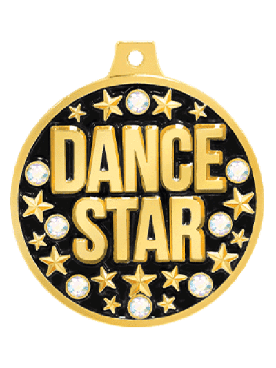 Crown 獨有的 Brilliance Dance Star 獎牌採用彩虹色水鑽鑲嵌在閃亮的獎牌上,在黑色琺瑯背景下鑲嵌金色星星和字母。用這枚閃亮的獎牌獎勵您所有的明星舞者!額外的雕刻、標識和設置費用適用。