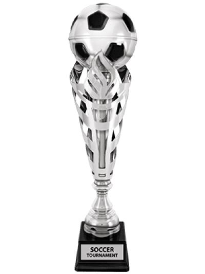Soccer Beacon 金屬獎杯是對您的足球冠軍的非凡獎勵!這個獎杯有一個帶有黑色點綴的足球和帶鏤空的閃亮銀杯設計,位於方形黑色底座上。額外的雕刻、標識和設置費用適用。