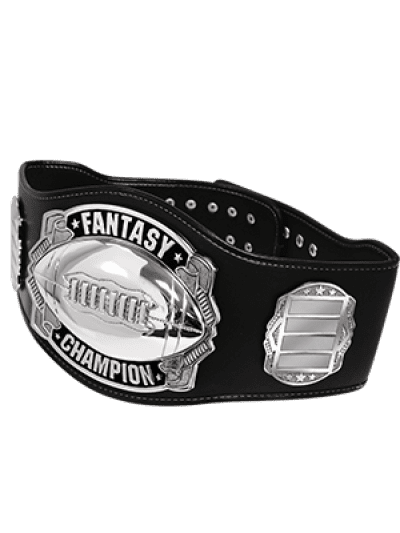 向你的賽季冠軍致敬! Crown 獨有的 Fantasy Football Perpetual Champion 腰帶採用 3D 閃亮銀色 Fantasy Champion 設計,黑色帶子兩端各有一個足球和銀色鈕扣,可調節腰帶尺寸。我們的 Perpetual Fantasy Football 腰帶配有一個雕刻板。腰帶兩側各有四個小雕刻板。額外的雕刻、標識和設置費用適用。