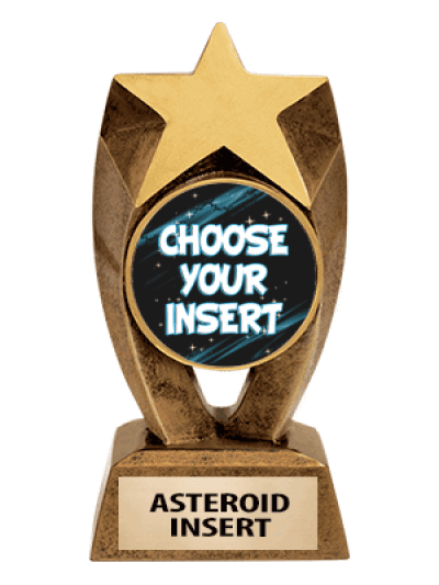 獨特的小行星插入雕塑配有一個 2 英寸的插入支架,可容納您選擇的任何插入物。非常適合任何活動或組織!額外的雕刻、徽標和安裝費用適用。