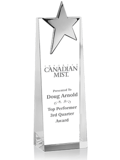 一個優雅的光學水晶塔,頂部有一個美麗的鉻星 額外的雕刻、標誌和安裝費用適用。