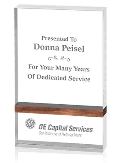 客製化水晶獎盃若使用到實木材料時,使用機械切割機和雷射切割機並搭配電腦軟體輸入數據,使用機器於木材表層雕刻,使用機械切割機雕刻出的圖樣及字樣為木頭之原色,雷射切割機雕刻出之圖樣為燒酌顏色,使用機械切割機較為環保,雷射切割機質感較佳。此種手法優點為:漂亮美觀、減輕客製水晶盃重量。