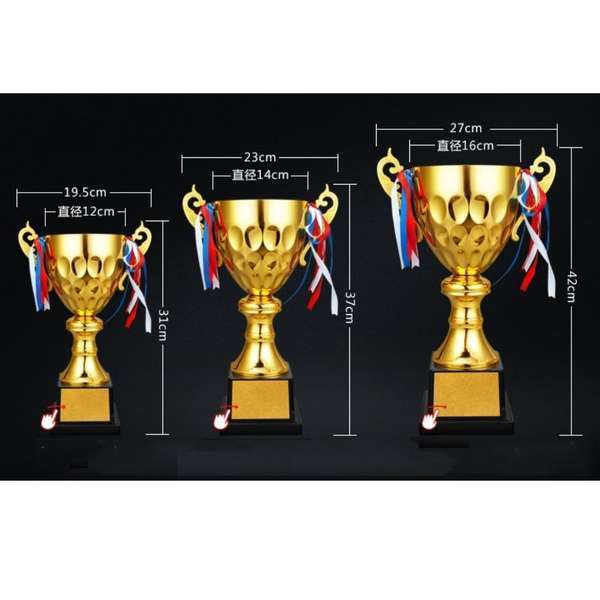 獎盃依據造型的不同以及生產廠商的差異並沒固定的標準尺寸規格,但大約可分為以下幾種尺寸: 小型獎盃約18公分高、中型獎盃約25公分高、大型獎盃約28公分高、特大型獎盃約34公分高。